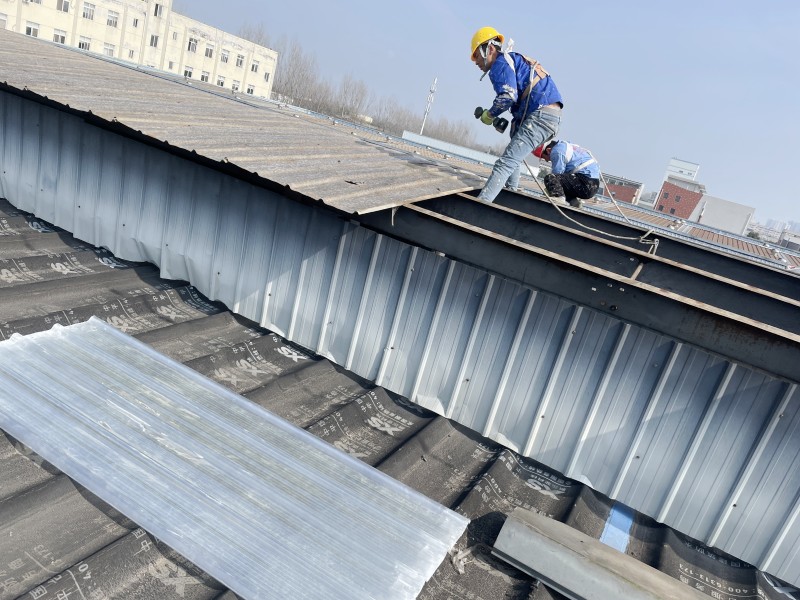 經過幾天的高效施工,成都欣國立廠房屋頂煥然一新。FRP采光瓦與原有鋼結構屋面**融合,氣樓區域采光、防水、通風功能全面升級。經暴雨及大風天氣考驗,無任何滲漏、松動現象,業主對蜀禹公司“專業、高效、精益”的服務品質給予高度評價。