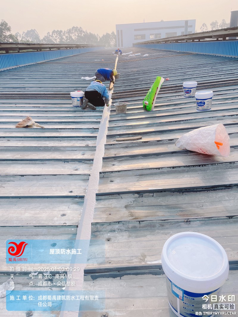 成都眾信塑膠 廠房鋼結構屋面防水補漏工程是成都蜀禹建筑防水工程有限責任公司在工業建筑防水領域的又一成功案例。我們始終堅持以客戶需求為導向,以專業技術為支撐,致力于為客戶提供高品質、可靠的防水解決方案。未來,我們將繼續秉承 “質量更優、服務至上” 的理念,不斷提升技術水平和服務質量,為更多客戶解決屋面防水難題,守護工業建筑的安全與穩定。